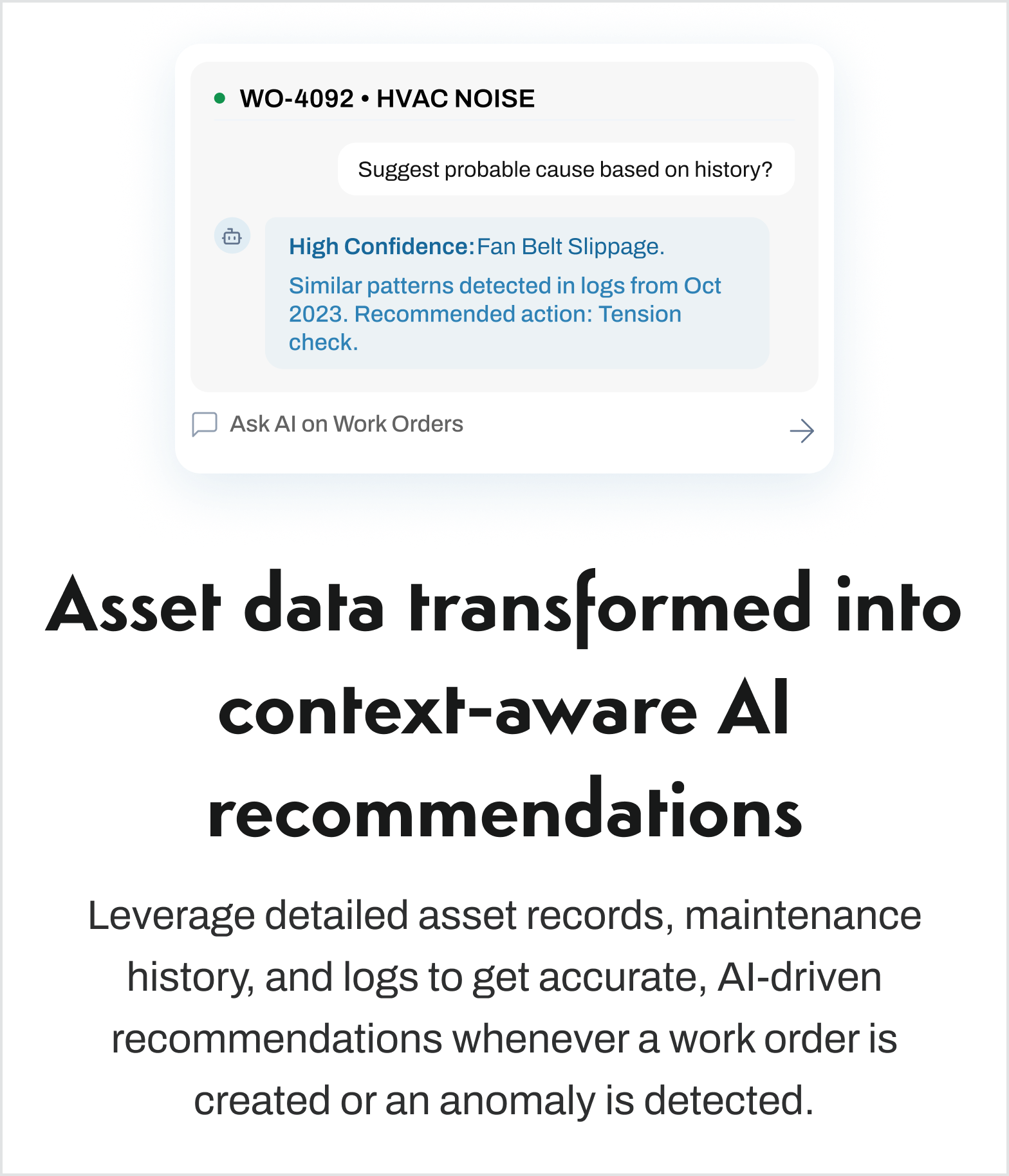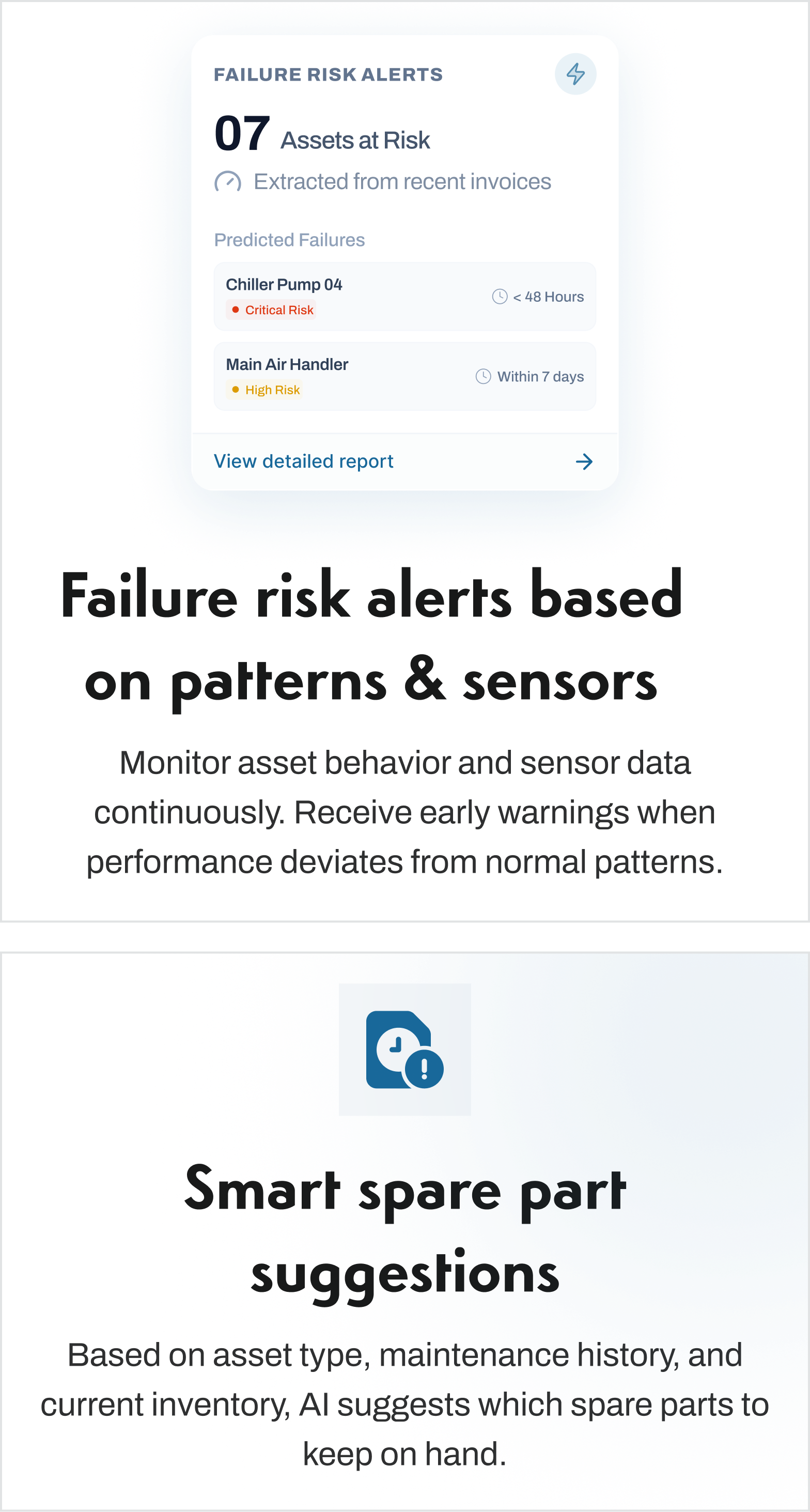 Let AI handle the heavy lifting from extracting invoice data to predicting failures before they happen. Get smart recommendations that save time and reduce costs