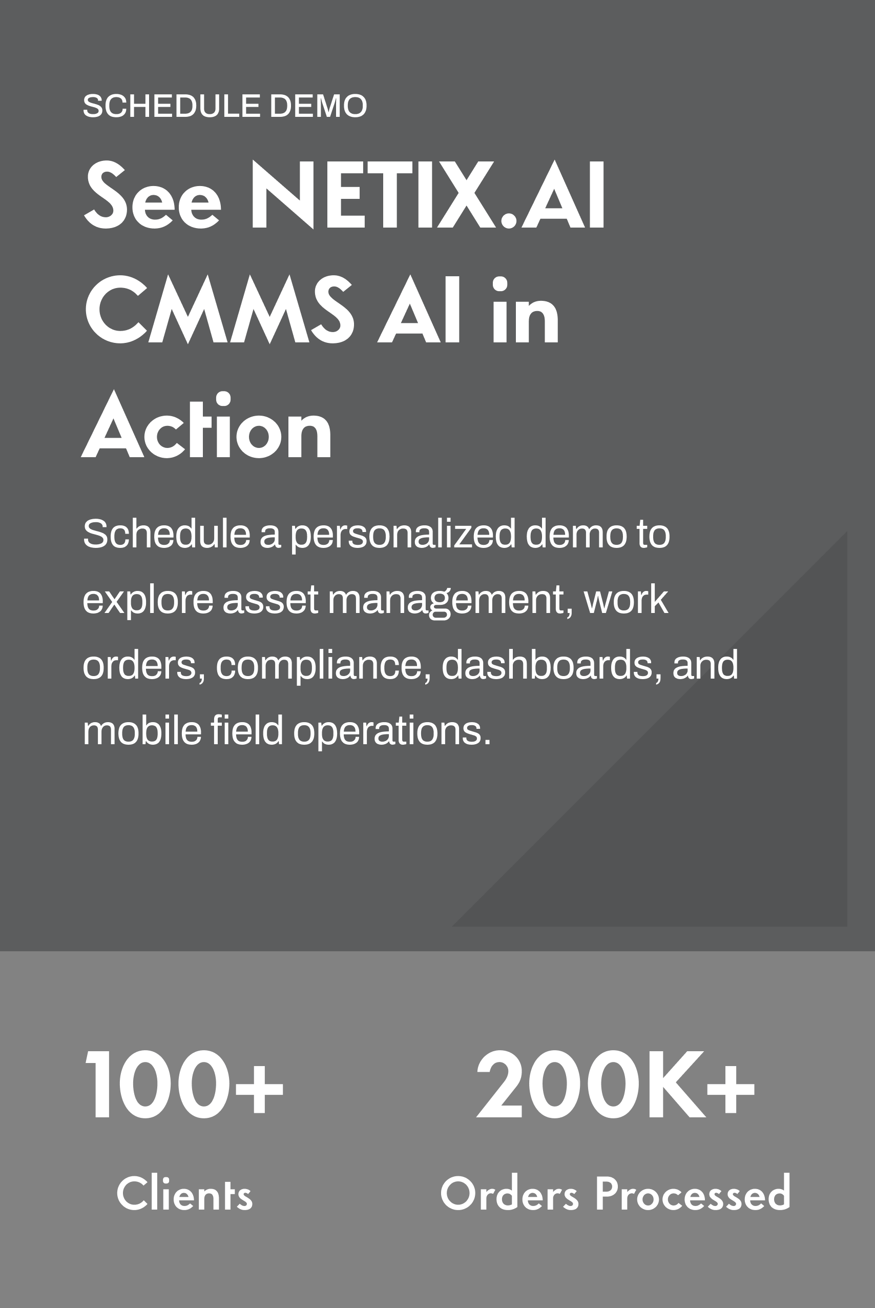 Flexible CMMS pricing plans designed to scale with your organization. Whether you manage a single facility or a global portfolio, NETIX.AI’s AI-powered CMMS software delivers the right tools, insights, and integrations to support your operations.